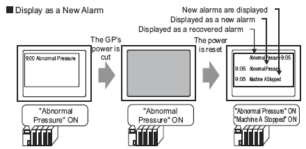 Choose the Alarm Message display method from [History], [Log], or [Active]. Choose [Active] to display only alarms which are currently triggered. To display old alarms as well, choose [History] or [Log].