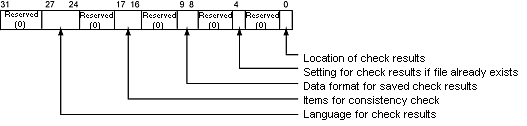Language for check results 0000: (ASCII) Europe and the United States 0001: Japanese 0010: Chinese (Traditional) 0011: Chinese (Simplified) 0100: Korean 0101: Russian (Cyrillic) 0110: Thai Other than those above: Europe and the United States |