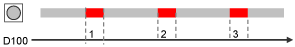 Set Range 1 to 3 as a range with the State 1 (Yellow), and set Range 2 as a range with the State 2 (Red). By setting the priority for the State 2 higher than that of State 1, State 2 is displayed when the value of D100 is between 40 and 80.