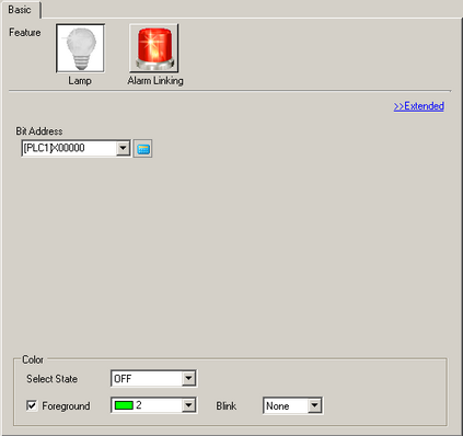 To set three or more colors for a lamp using multiple bit addresses or Word addresses, set them in the [Extended] dialog box.