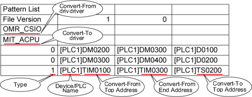 [Type]*2, [Device/PLC Name] Convert-From Start Address,[Device/PLC Name] Convert-From End Address, [Device/PLC Name] Convert-To Start Address