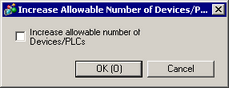 Displayed when you select devices/PLCs for which the number of allowable devices can be expanded. Click this button and the [Increase Allowable Number of Devices/PLCs] dialog box appears.