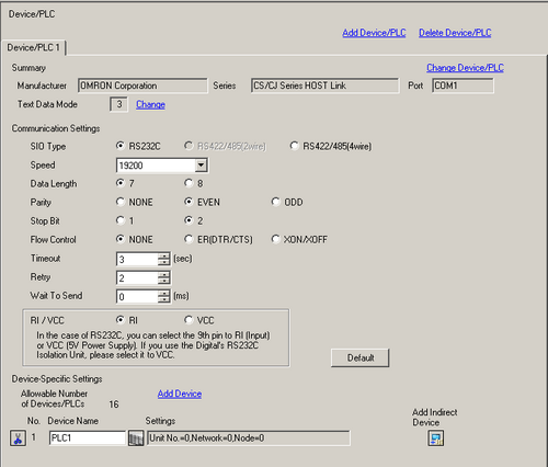 Set individual settings as needed according to the device/PLC. Click the button to display the [Individual Device Settings] dialog box.