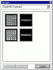 Displays the [Package] window. Register parts, drawings, keypads and others from the screen editor, logic programs from the logic screen, subroutines and function blocks from the Screen List window, by dragging and dropping them. You can position parts, drawings, keypads and others in the screen editor, logic programs, subroutines and function blocks in the logic screen by dragging and dropping them, if they are already registered.