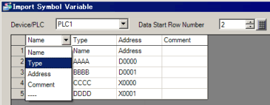 7. In [Bit Address] and [Word Address], enter text to match the [Type] column.