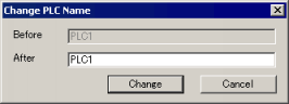 Defines the device/PLC for the selected program. Click to display the following dialog box where you can confirm the device/PLC set up in GP-Pro EX, and set [Change After]. Clicking [Change] will define the device/PLC name displayed in the [Programs in Project] table's [GPPRO EX (PLC) Name] column.