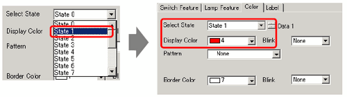 6. Click the [Color] tab. In the [Select State] list, select [State 0] and define its [Display Color].
