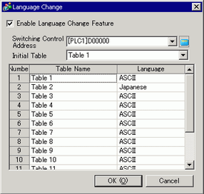 Set the Text Table language and the address to control the language change feature.