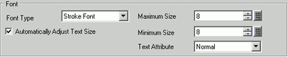If you select [Stroke Font], the [Automatically Adjust Text Size] option appears. By selecting this option, the font size adjusts automatically to fit the text in the part.