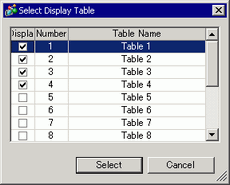 Set the tables to display on the Text Table setting screen. Select the check boxes next to the necessary tables to register the Text Table.