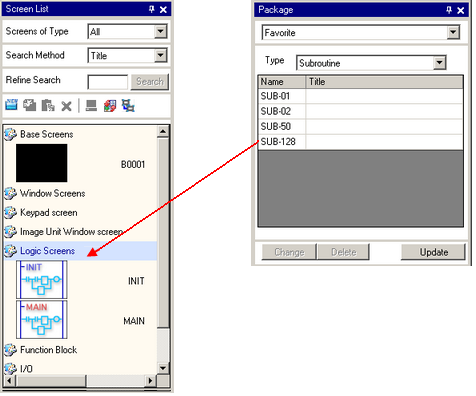 You can also insert a subroutine directly by dragging and dropping it from [Package] to the Logic Screen. In this case, the subroutine is also registered in the [Screen List] window.