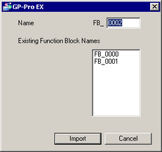The FBs already registered in the [Screen List] window are listed in the [Existing Function Block Names].