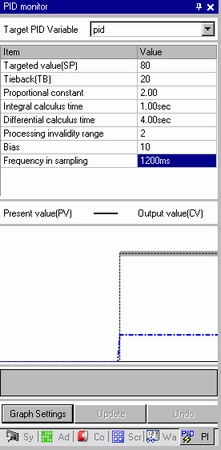 In [Target PID Variable], select the PID variable that you want to monitor. The PID instruction setting is displayed in a graph.