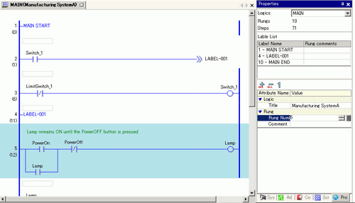 In [Label List], all the logic program labels are displayed. Select a label to move the cursor to the selected logic program label.