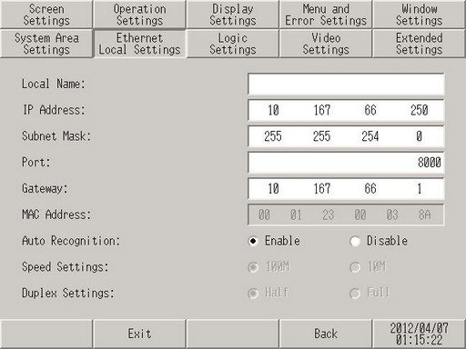 Sets up the display unit's IP address. The IP address is 32 bits and entered in four 8-bit units, entered in decimal.