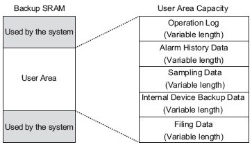 Since the models in the GP-4100 series are not equipped with backup memory (SRAM), part of the internal memory is used as the backup area. User documents refer to this area as "virtual backup memory".