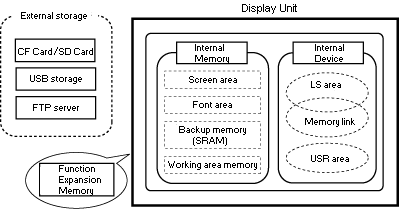 External storage you can use to save data in (or reference) differs depending on the function and display unit model.