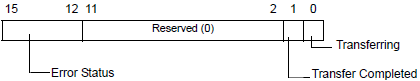 If the transfer fails, the Transferring Bit turns OFF, and the error code is set in the error status (status bits 12-15). Before starting the next transfer, clear the Status and Control bits to 0 and turn on the required Control bit.