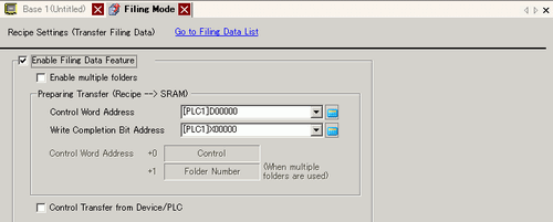 When the designated [Control Word Address] bit 0 turns ON and filing data is correctly transferred, the [Transfer Complete Flag Address] turns ON. After confirming completion, turn OFF this address.