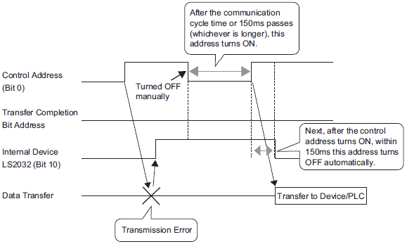 This address is not turned OFF automatically. After confirming that the [Transfer Complete Flag Address] is ON, turn OFF bit 0.