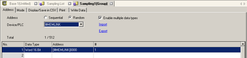 For each row, specify the data type and address where the data is collected from. Based on the [Data Type] and [#], the system calculates the number of words.