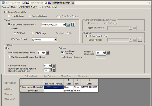 Specifies whether to save as a CSV file. If so, set the control address to write the data to an external storage.