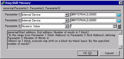 Performs ring-shift between the start and ending addresses in block units (by the specified number of words). When an error occurs, the error status is written to LS9150.
