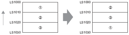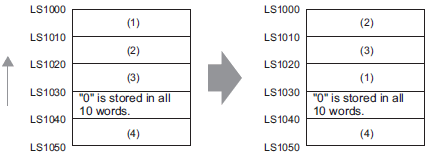 Data moves upward in 10-word block units only, from the starting block to the block with "0" data. If data exists after the block with "0" data, the data is ignored.