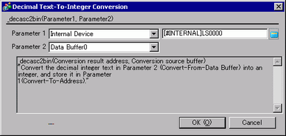 This function is used to convert a decimal string to integers. Convert the decimal integer text in Parameter 2 (Convert-From Data Buffer) into an integer, and store it in Parameter 1 (Convert-to Address).