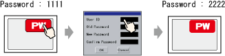 You can change the password by touching the special switch set up in the [Password Settings (Screen Input)] to display the password change screen.
