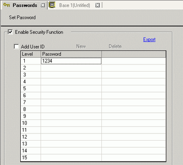 1. Create [Password] and [ID] on the password setting screen, and then click [Export].