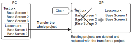 For example, Transfer "Lesson.prx" to the display unit where "Test.prx" is stored.