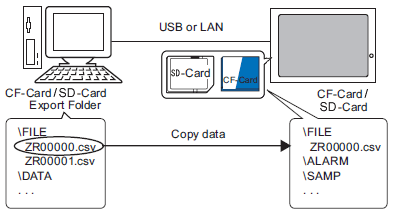 For example, Copy created recipe data (ZR00000.csv) to the CF/SD Card.