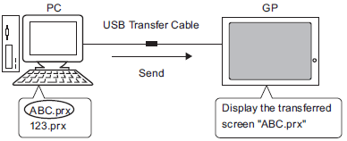 Use a USB cable to connect the computer and display unit, and transfer project files (*.prx).
