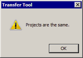 A message is displayed when there is no difference between projects or there is a difference in the file date/time stamps.