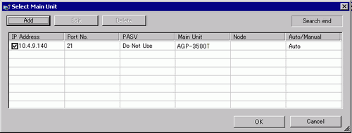 Click [Send Project]. The [Select Display Unit] dialog box displays the IP addresses of the display units. The [Select Display Unit] dialog box displays the IP addresses of the GPs available on the network. The transfer begins. When multiple IP addresses are checked, the project is sent to multiple display units at once.