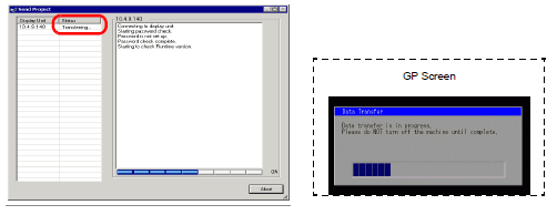On the GP-Pro EX state toolbar, click the Transfer Project icon