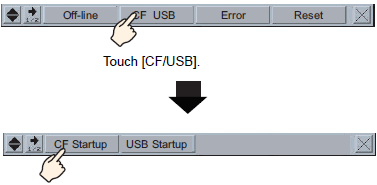 Touch [CF/USB]. Touch [CF startup] to automatically reset the display unit.