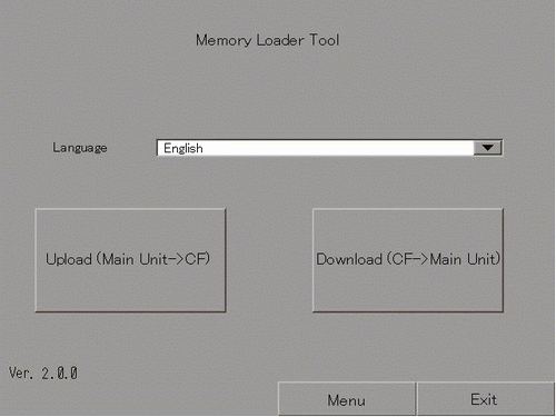 The Memory Loader Tool launches and the following screen opens. Touch [Upload].