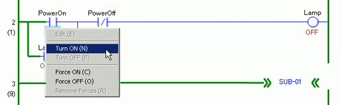 When you specify [Force ON] or [Force OFF], the symbol variable keeps its ON or OFF state until you remove forces.