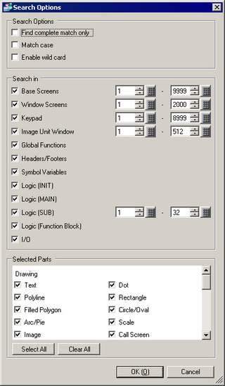 Specifies whether to search Logic (SUB) screens as well as the search range from 1 to 32.