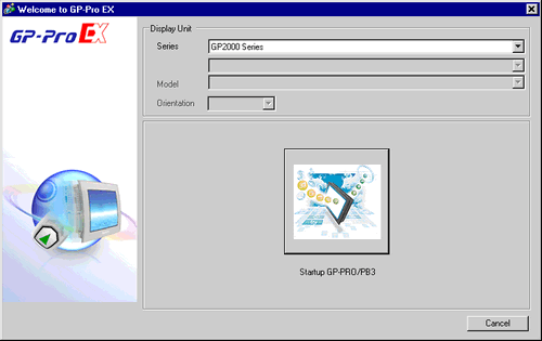 Click the icon to exit GP-Pro EX and start GP-PRO/PB3. GP-PRO/PB3 does not start if not installed.