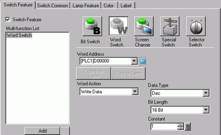 Touch the switch and data will be written to the device/PLC's address specified in [Word Address].
