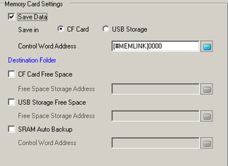 Specifies whether to save data in backup memory (SRAM) to external storage. When you select save, define the save location from [CF Card], [SD Card], or [USB Storage].