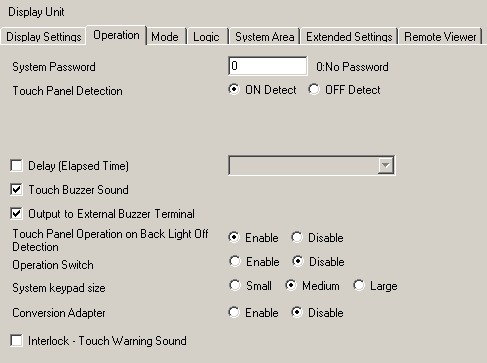 When the [Enable] check box is selected, the display unit accepts inputs from the touch panel or function keys only when the Operation Switch (OP) is pressed.