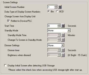 If [Screen Change] is selected for [Standby Mode], specifies the base screen number to switch to after [Standby Mode Time] passes.