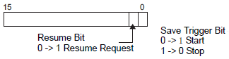 Bit 1 (resume bit) of the [Control] address does not automatically turn OFF. Confirm that bit 2 (MAX bit) of the [Status] address is tuned OFF and then turn OFF the resume bit.