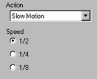 When selecting [Slow Motion] under [Action], specify the play speed from [x 1/2], [x 1/4] or [x 1/8].