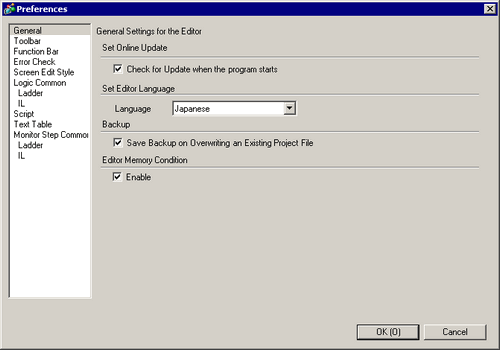 To start the online update every time you launch GP-Pro EX, from the [View] menu select [Preferences], and in the dialog box's [General] view select the [Check for Update when the program starts] check box, then click [OK].