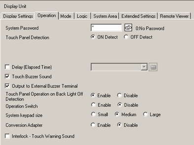 When the [Enable] check box is selected, the display unit accepts inputs from the touch panel or function keys only when the Operation Switch (OP) is pressed.